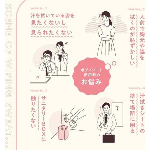 ●見えない場所で、スマートに汗も気持ちもリセット!トイレに流せる汗ふきシート