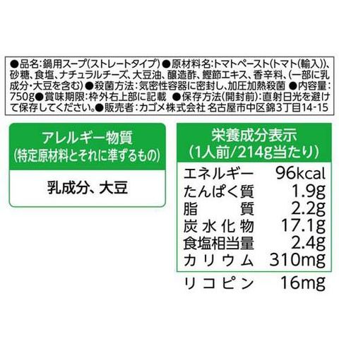 【カゴメ 甘熟トマト鍋スープの商品詳細】