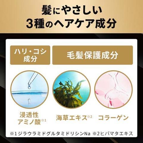 ●髪にうれしい3種のヘアケア成分配合。ハリ・コシ成分※2と、2種の毛髪保護成分※3で、髪の内側から弾力を与え白髪を染めながらハリ・コシのある髪へ導きます。