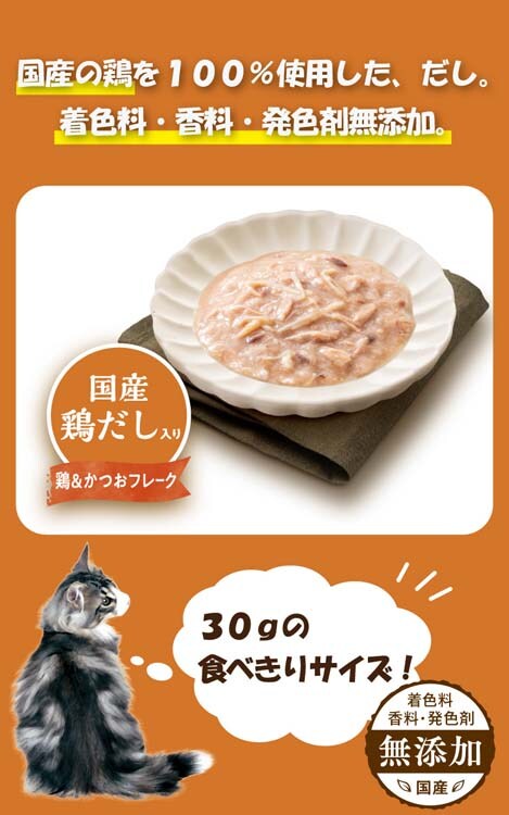 ●鶏&かつおフレークに国産鶏だしのとろ旨だし仕立て