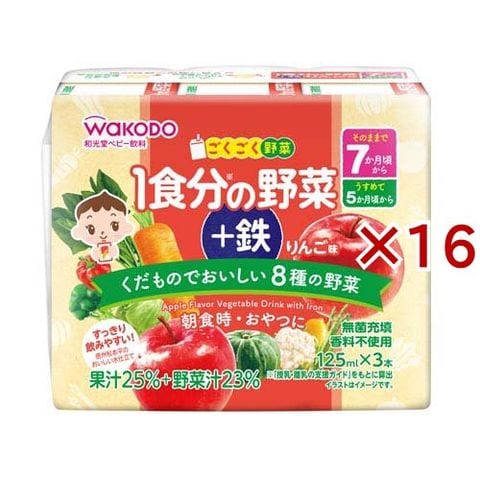 ごくごく野菜 1食分の野菜 +鉄 りんご味 (3本×16セット(1本125ml))