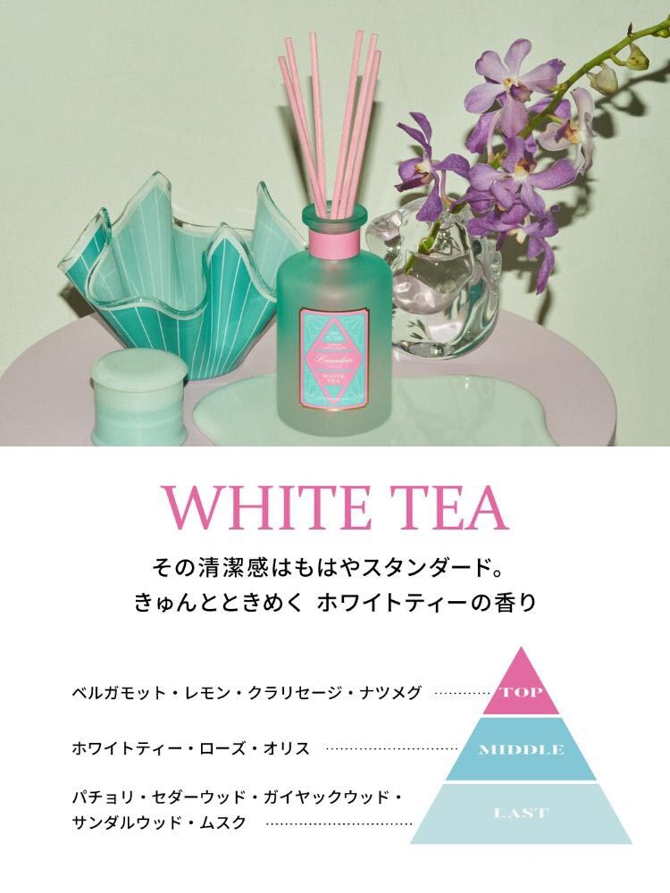 ●自然で心地よい香り立ちのルームディフューザー。いつもの時間がもっと楽しくなるティーフレグランスシリーズ、ホワイトティーの香り。