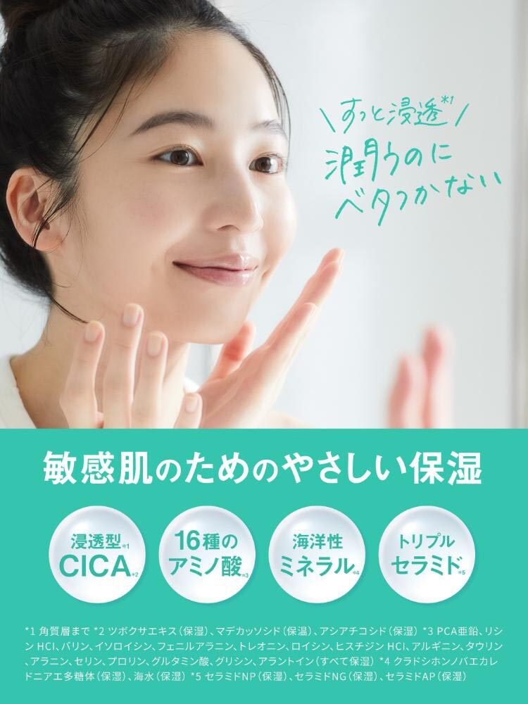 *1 セラミドNP、セラミドNG、セラミドAP(全て保湿) *2 角質層まで *3 ツボクサエキス、マデカッソシド、アシアチコシド(全て保湿)