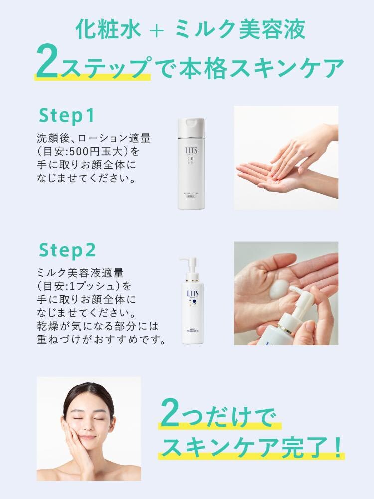 洗顔後、適量を手に取り、お顔全体になじませてください。乾燥が気になる部分には、重ねづけがおすすめです。