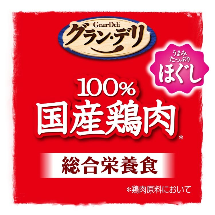 【グラン・デリ 国産鶏肉 使い切りパウチ ほぐし 成犬用 緑黄色野菜&チーズの商品詳細】