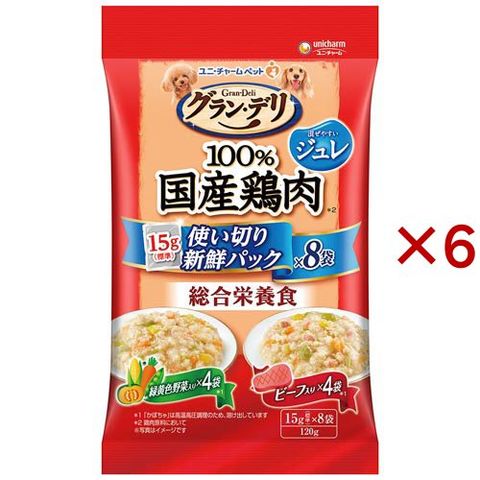 グラン・デリ 国産鶏肉 使い切りパウチ ジュレ 成犬用 緑黄色野菜&ビーフ (8袋入×6セット(1袋15g))