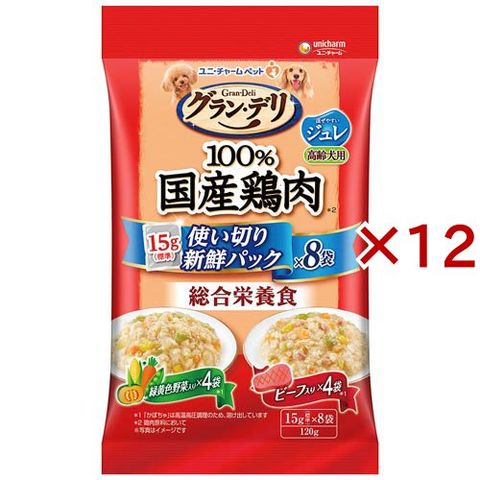 グラン・デリ 国産鶏肉 使い切りパウチ ジュレ 高齢犬用 緑黄色野菜&ビーフ (8袋入×12セット(1袋15g))
