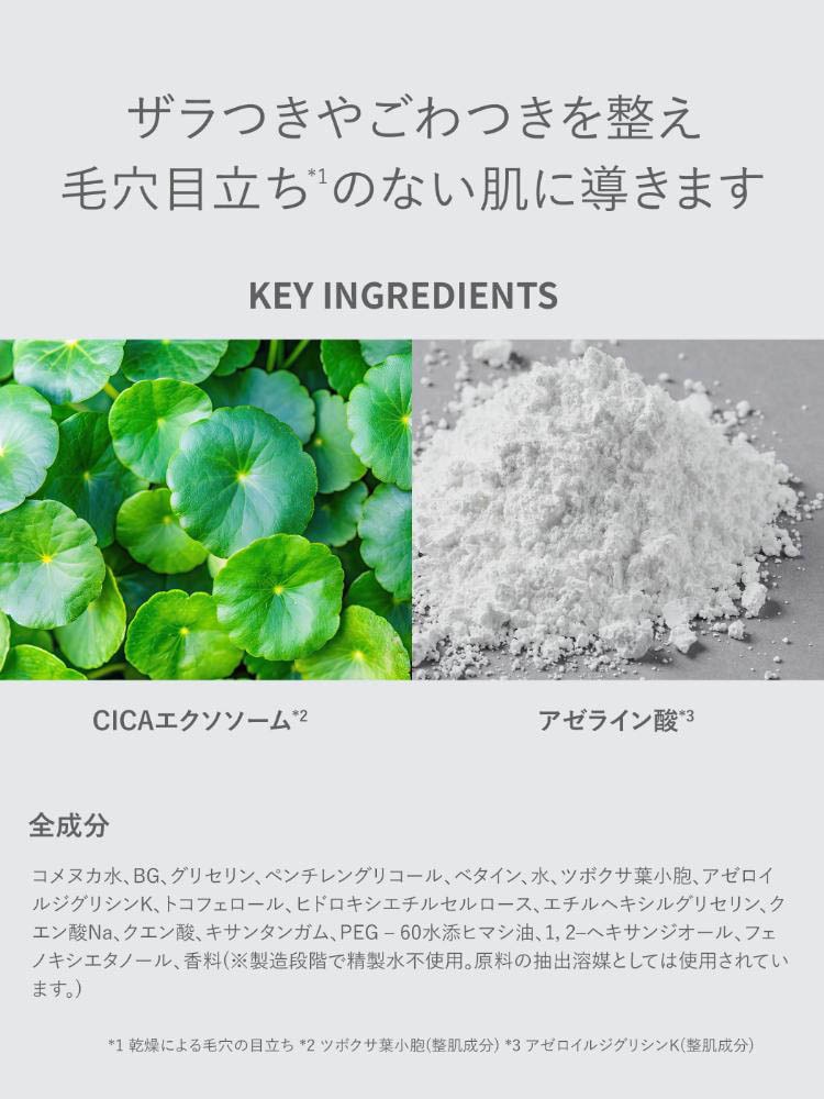 ●アゼライン酸(*5)配合で、ザラつきやごわつきによる毛穴目立ち(*1)のない肌に導きます。