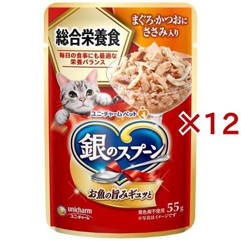 銀のスプーン パウチ 総合栄養食 まぐろ・かつおにささみ入り (55g×12セット)