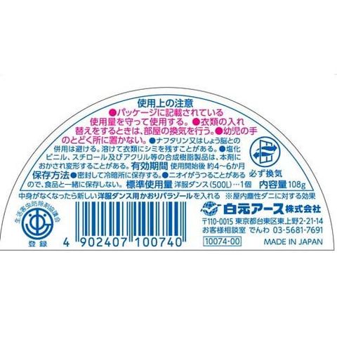 ●パラジクロルベンゼンの防カビ効果により衣類にカビを生えにくくします。