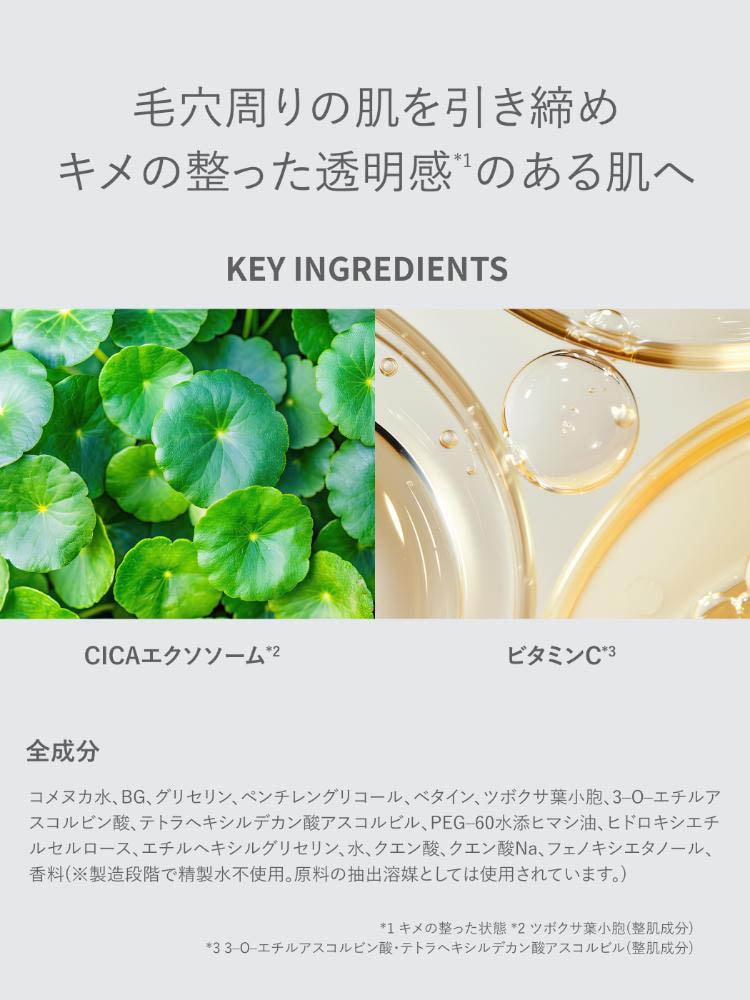 ●ビタミンC(*7)配合で毛穴周りの肌を引き締め、キメの整った透明感(*1)のある肌に導きます。