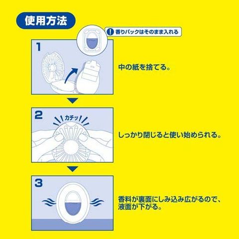 ・使用上の注意:用途以外に使用しない。未開封の香りパックは外箱パッケージと一緒に保管する。子供の手の届かないところに置く。