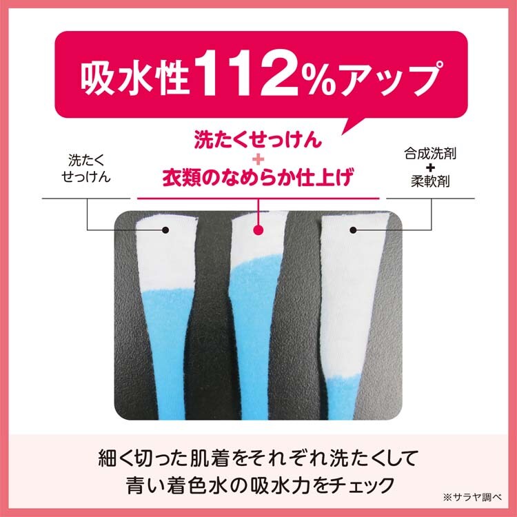 ●洗たくせっけん専用仕上げ剤。吸水性UP、洗濯槽の防カビ、肌まさつ低減。赤ちゃんの未来を育む無添加※。