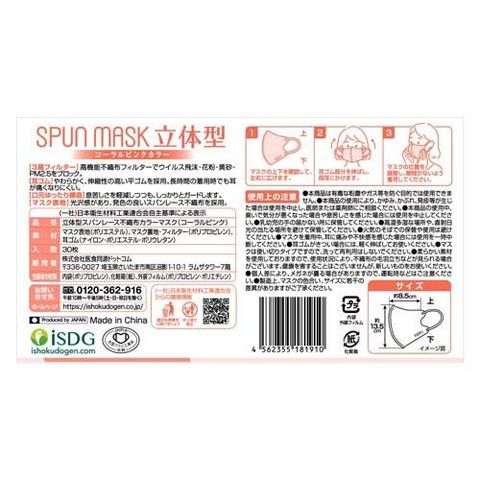 【立体型スパンレース不織布カラーマスク コーラルピンクの商品詳細】