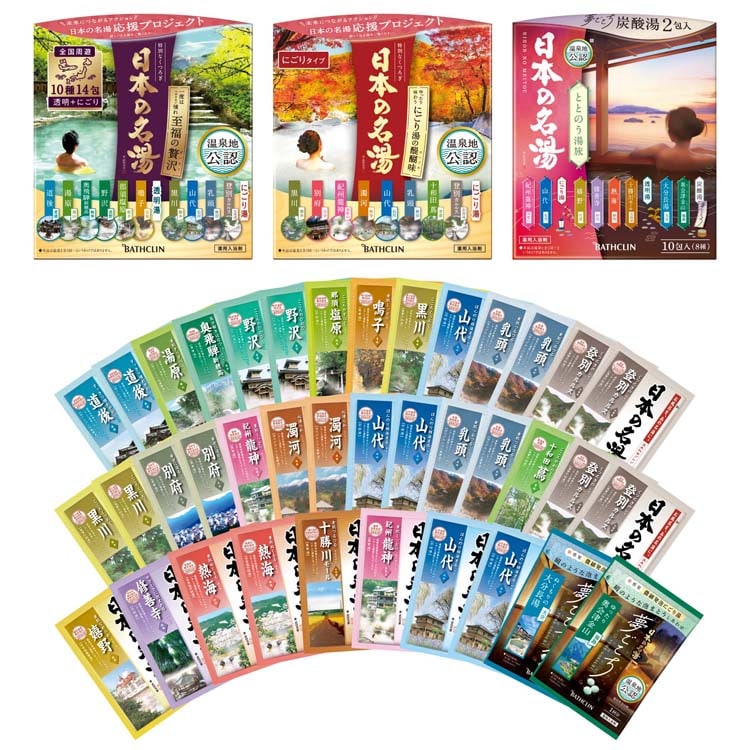 ●「日本の名湯」の3つのアソート(至福の贅沢、にごり湯の醍醐味、ととのう湯旅)を詰め合わせた20種38包入の大容量アソート