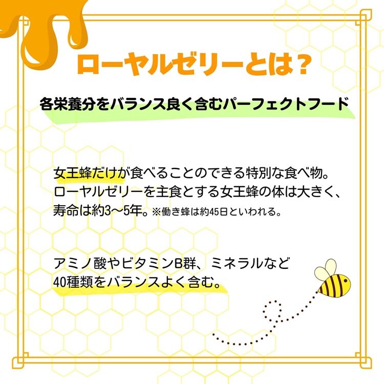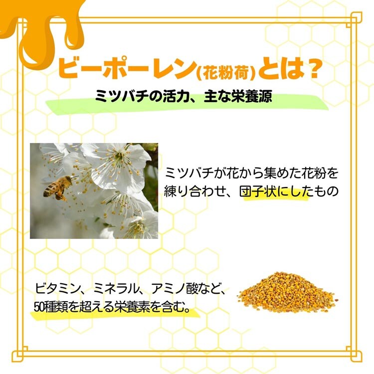 | はちみつ(イタリア)、花粉荷(4%)、ローヤルゼリー(0.5%)、レモン製油 |