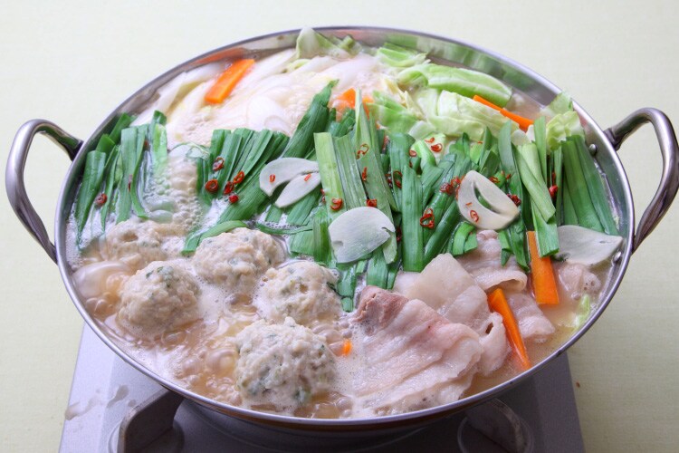 ●じっくり煮込んだ豚骨、鶏ガラスープに野菜スープと本醸造醤油を加えたコクがあって濃厚な味わいのとんこつしょうゆ鍋つゆです。