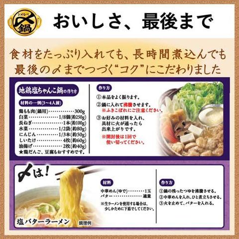 ●コクがある味わいなので、お鍋はもちろん、〆まで美味しく食べられる鍋つゆシリーズです。