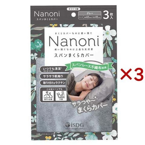 Nanoni スパンまくらカバー(グレー) (3枚入×3セット)