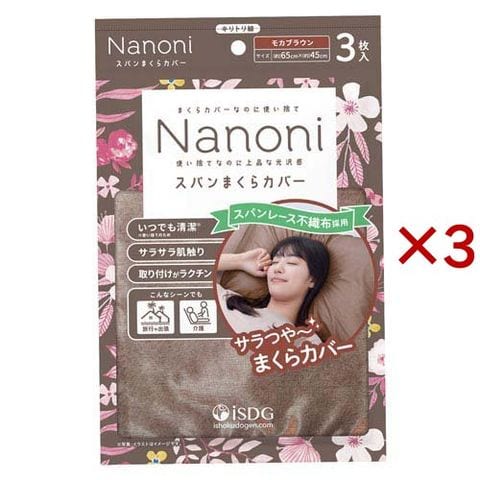 Nanoni スパンまくらカバー(モカブラウン) (3枚入×3セット)