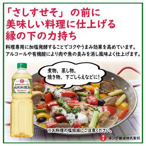 ●米と米こうじを加塩発酵しただけの本格志向の料理酒(加塩)です。料理専用に加塩発酵することでコクや旨み効果を高めています。