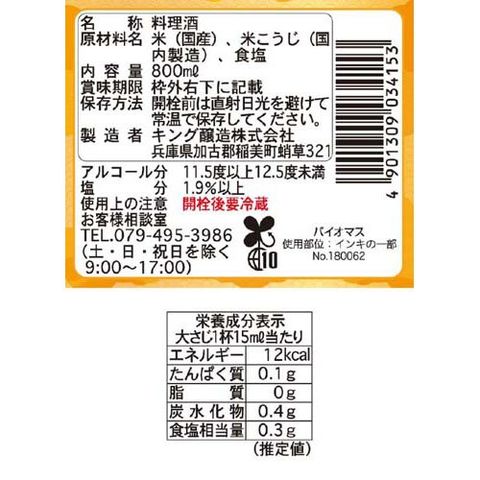 【日の出 国産米使用 純米料理酒の商品詳細】