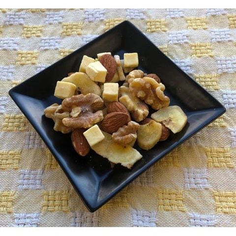 バナナチップ(バナナ(フィリピン)、植物油脂、砂糖)、クルミ、アーモンド、ナチュラルチーズ/香料