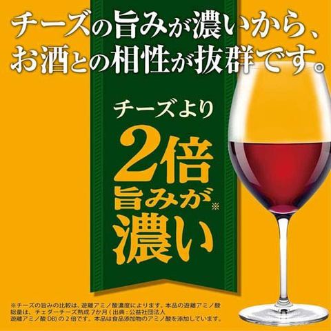 ●生チーズのチーザ<チェダーチーズ>旨みが濃いワインに合うおつまみです。長期間熟成により引き出された旨みたっぷりのチェダーチーズを53%も練り込んでいます。