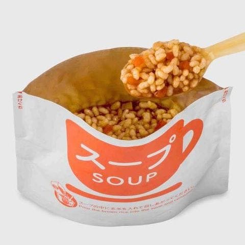 (1)開封後、スープと玄米とスプーンを取り出してください。