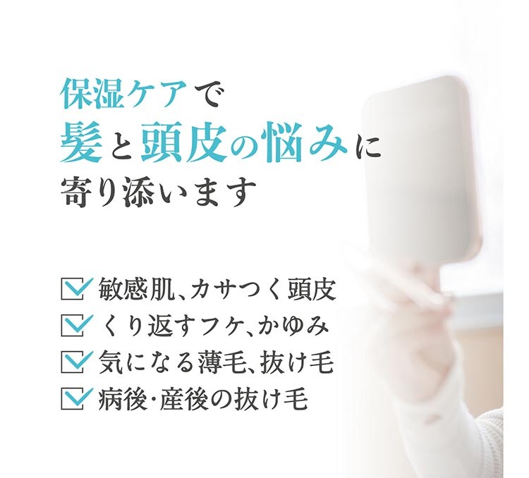●保湿成分ヒアルロン酸・天然植物エキスが頭皮にうるおいを与えて乾燥を防ぎ、頭皮環境を健やかに整えます。