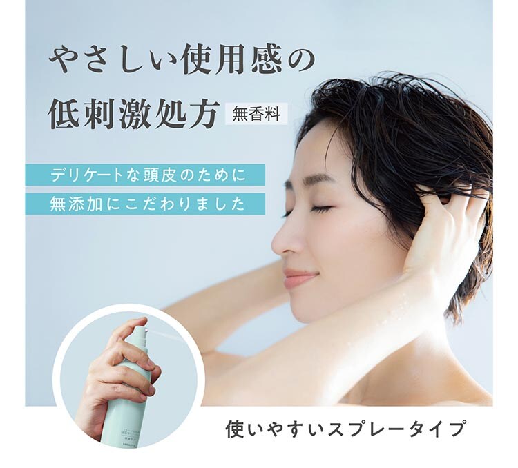 ・洗髪後や整髪前にお使いください。頭皮から5cm位離して適量をスプレーし、指の腹で全体を軽くマッサージしてください。1日2回程度、1回10~15プッシュを目安にお使いください。