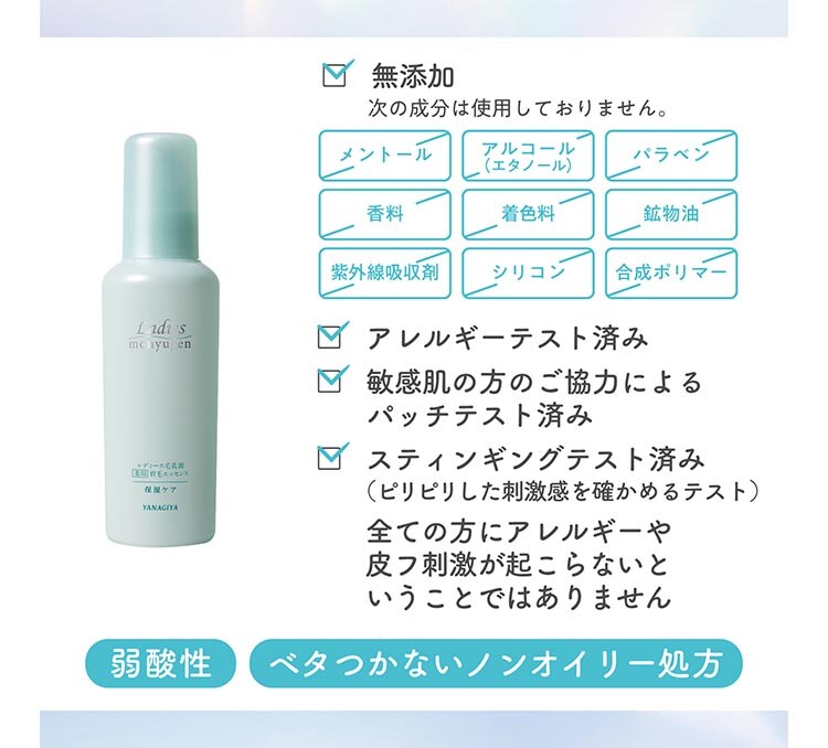 ●低刺激でやさしい使用感。メントール・アルコール・パラベン・香料・着色料・鉱物油・紫外線吸収剤無添加。