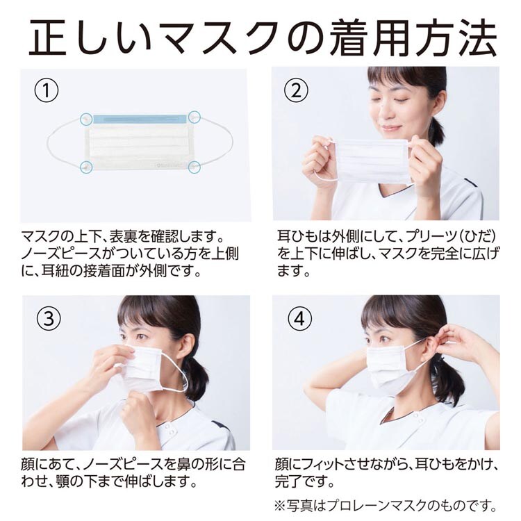 ●ASTM F2100 LEVEL1適合のマスクで、上下に開く立体プリーツ仕様なので口元が快適です。