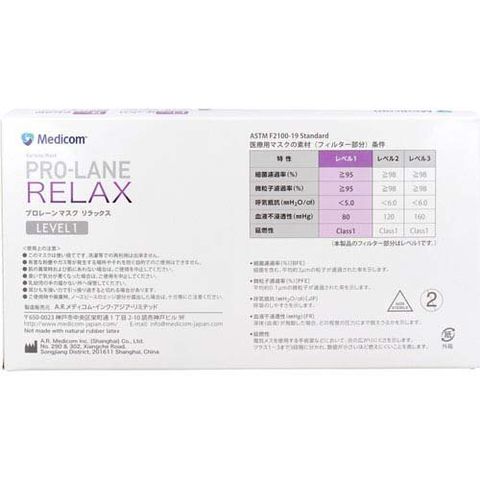 | ・構造:飛沫に強い3層構造(液体防護性:80mmHg) ・ノーズピース:アルミニウム ・耳ひも:幅広ソフトゴム ・サイズ:レギュラー(約89×178mm) ・ASTM F2100 LEVEL1 ・ろ過精度:BFE≧99%、PFE≧99% ・呼気抵抗:ΔP<4.0 |