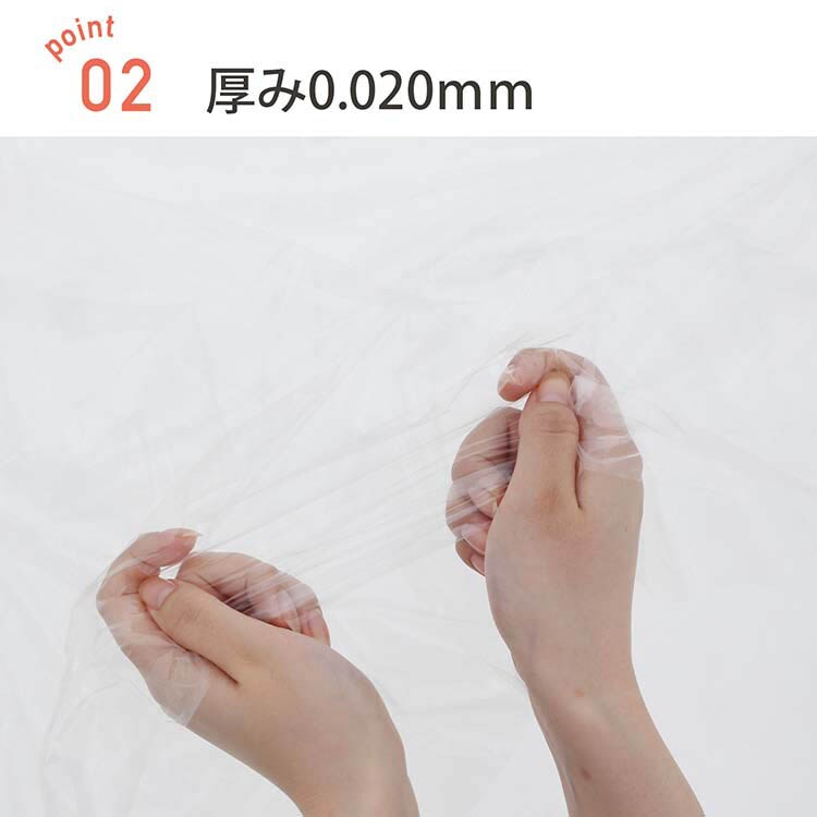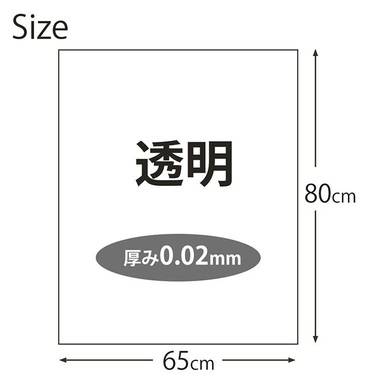 | ・サイズ:約65×80cm(1枚あたり) ・厚み:0.02mm ・容量:45L ・カラー:透明 ・枚数:20枚 ・材質:低密度ポリエチレン(LLDPE) |