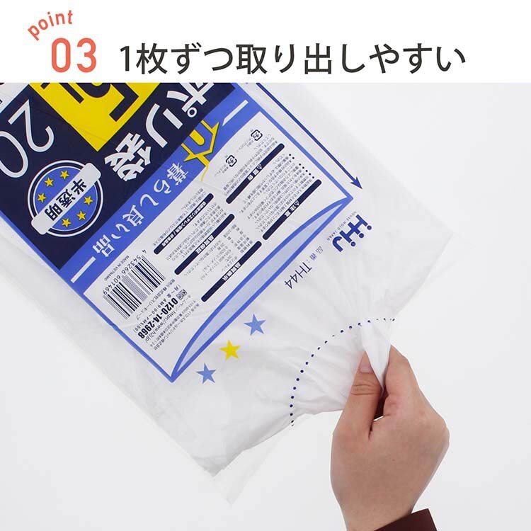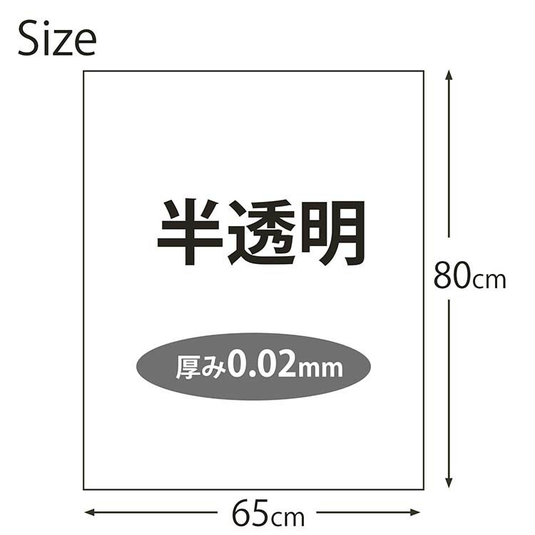 | ・サイズ:約65×80cm(1枚あたり) ・厚み:0.02mm ・容量:45L ・カラー:半透明 ・枚数:20枚 ・材質:低密度ポリエチレン(LLDPE) |