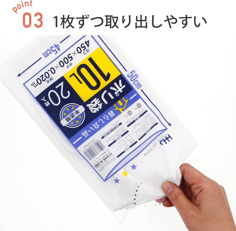 | ・サイズ:約45×50cm(1枚あたり) ・厚み:0.02mm ・容量:10L ・カラー:半透明 ・枚数:20枚 ・材質:低密度ポリエチレン(LLDPE) |