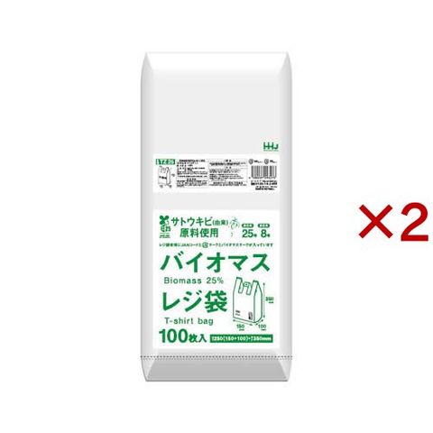 レジ袋 バイオマス25%配合 25号 半透明 TZ25 (100枚入×2セット)