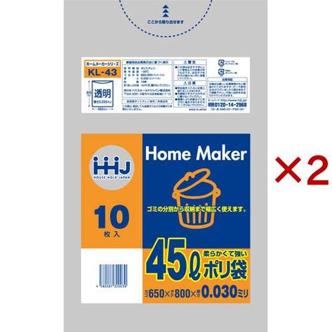 ポリ袋 透明 45L KL43 (10枚入×2セット)