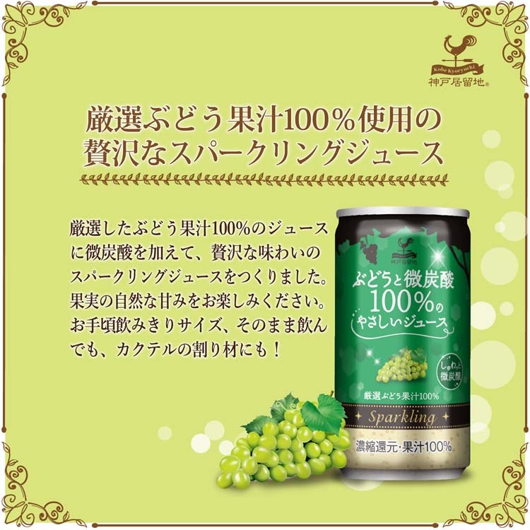 【神戸居留地 ぶどうと微炭酸100%のやさしいジュース 缶 果汁100% 甘味料 無添加の商品詳細】