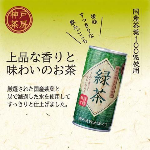神戸茶房 緑茶 缶 国産茶葉100% (30本入×2セット(1本185g))