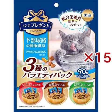 コンボ プレゼント キャット おやつ 下部尿路の健康維持 3種のバラエティパック (90g×15セット)