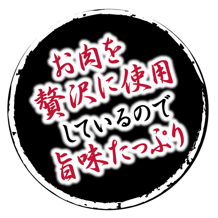 | 肉類(鶏・牛)、脱脂大豆、コラーゲン、小麦たん白、食塩、ソルビトール、プロピレングリコール、pH調整剤、保存料(ソルビン酸K・デヒドロ酢酸Na)、ポリリン酸Na、酸化防止剤(エリソルビン酸Na・V.E)、着色料(カラメル・赤102号)、乳酸Ca、発色剤(亜硝酸Na) |