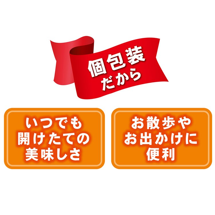 ●個包装だから、いつでも開けたての美味しさが楽しめて、お出かけやお散歩に便利です。