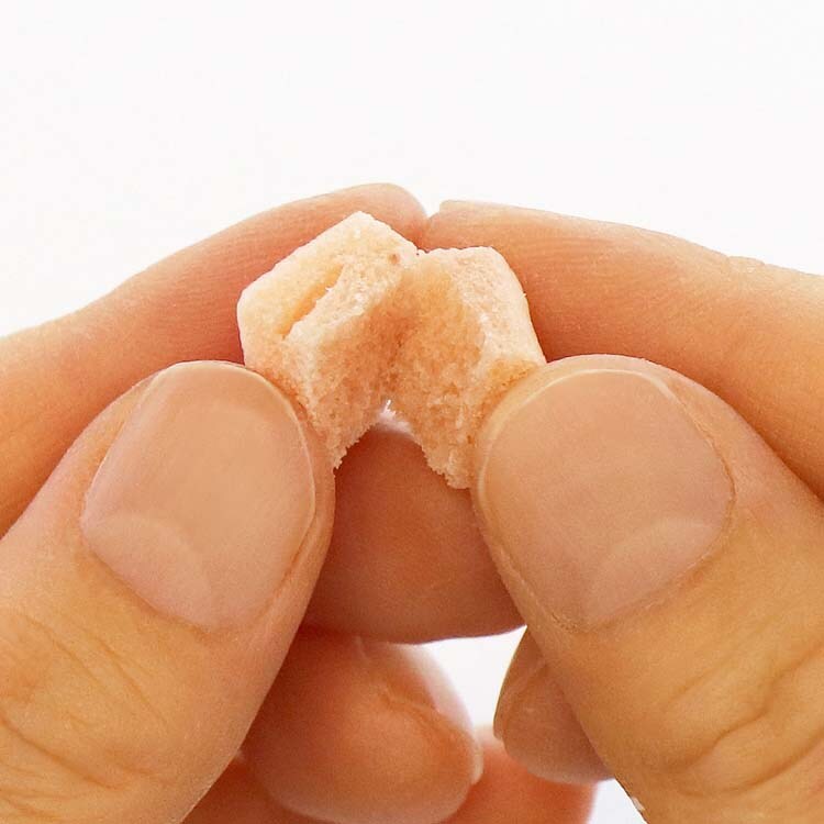 ●小型犬・シニア犬にも食べやすいやわらかさでしつけのごほうびにもピッタリのひとくちキューブタイプ。