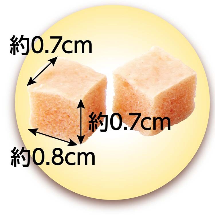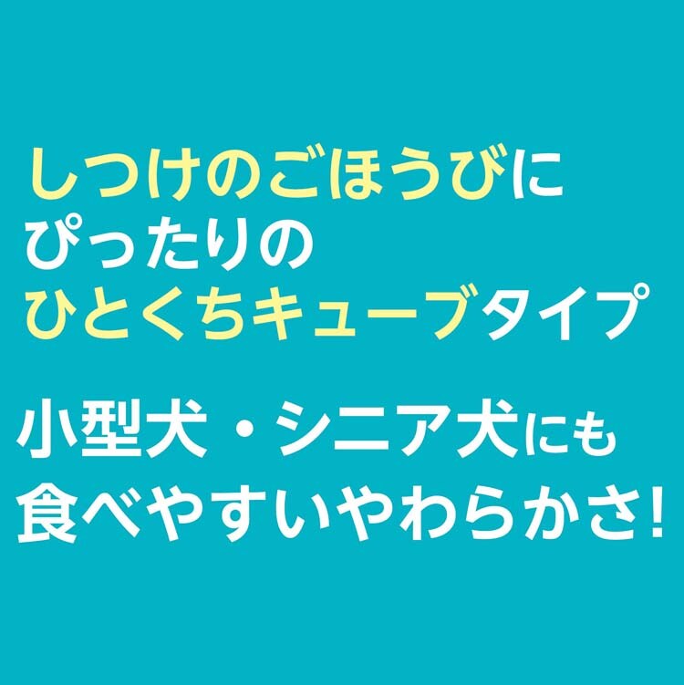 ●小型犬・シニア犬にも食べやすいやわらかさでしつけのごほうびにもピッタリのひとくちキューブタイプ。