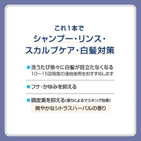 ●リンス効果、フケ・かゆみ、頭皮臭を防ぐ*といったスカルプケア効果も併せ持っています。