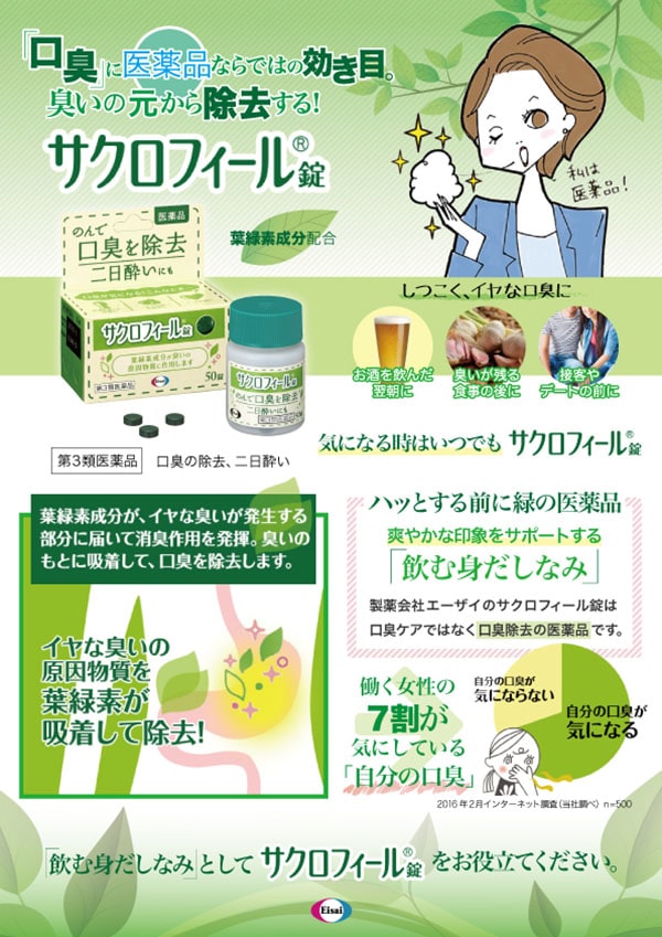 ●葉緑素から作られた緑の成分が、体の中で臭いの原因物質に作用し、口臭を取り除きます。