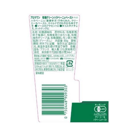 | 有機青唐辛子塩漬け、有機食用ひまわり油、有機食用オリーブ油、有機レモン果汁/増粘剤(グァーガム) |