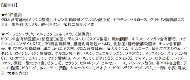 | ★60日亜鉛ゼラチン ★パーフェクト サプリ マルチビタミン&ミネラル(試供品)大豆・小麦・乳成分 |